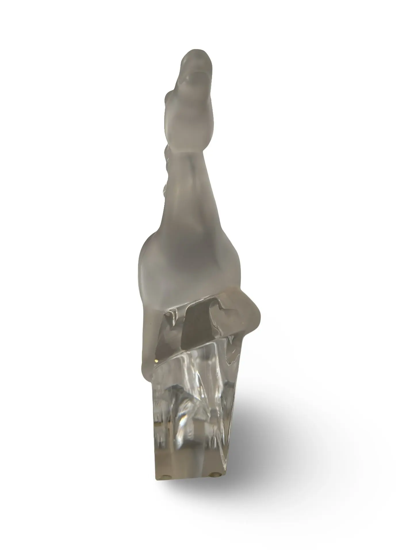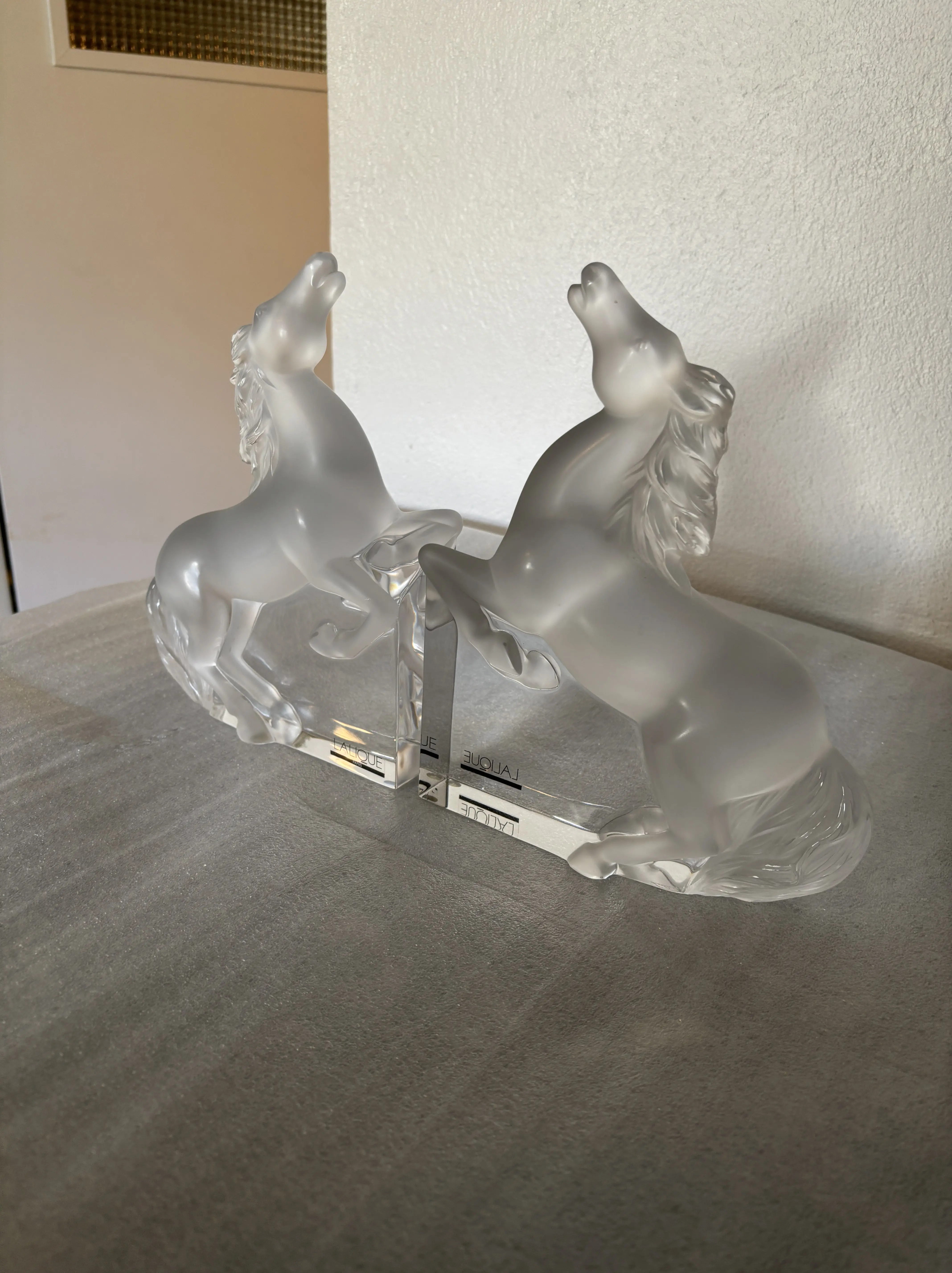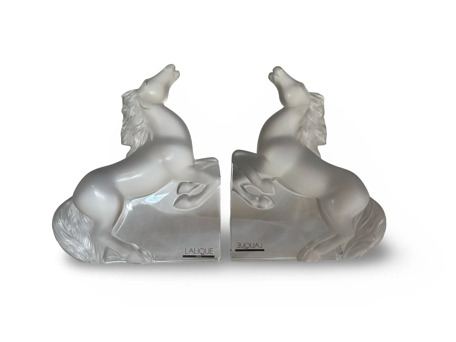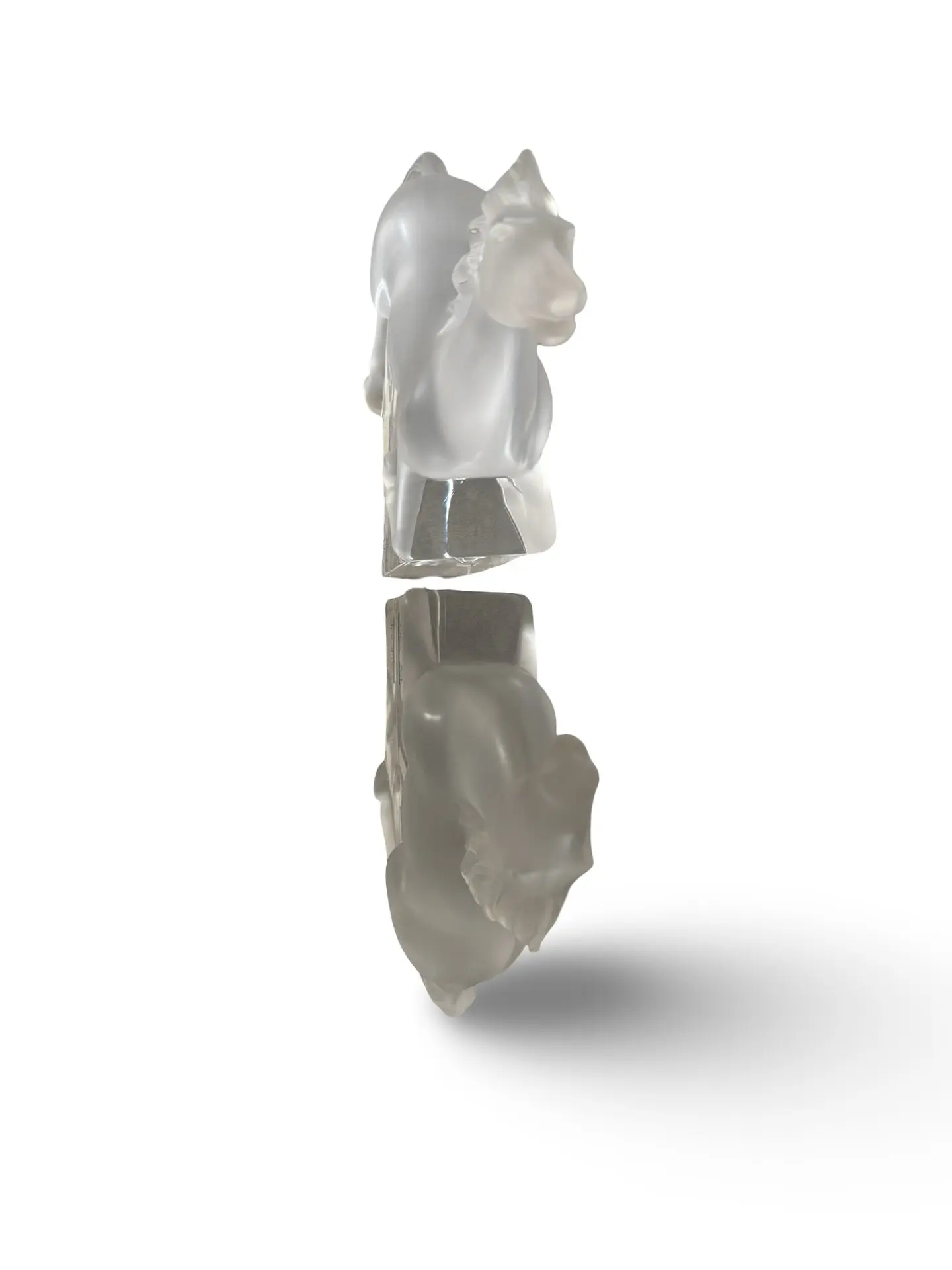 Magnifique paire de serre-livres en cristal clair et dépoli moulé pressé.