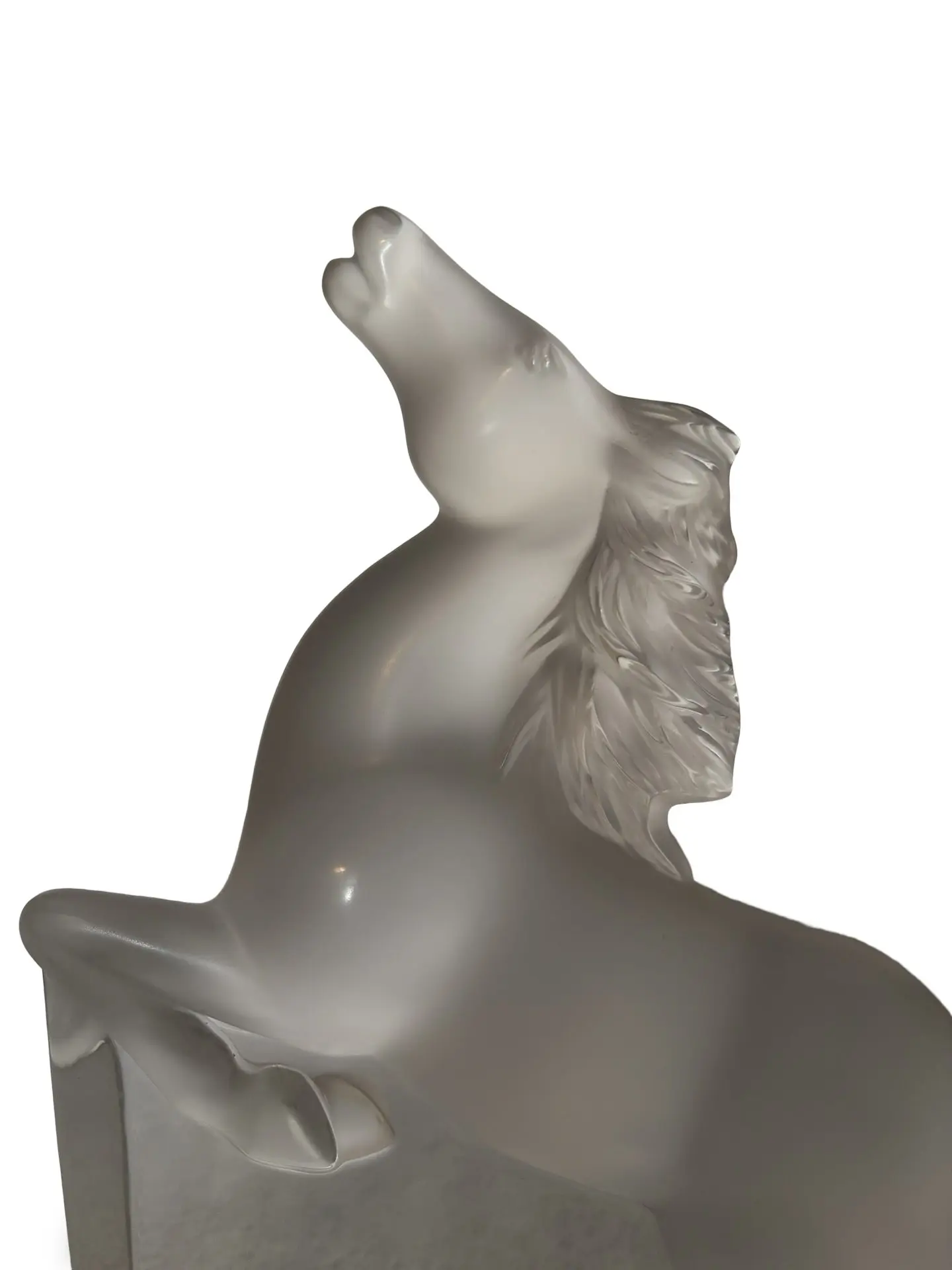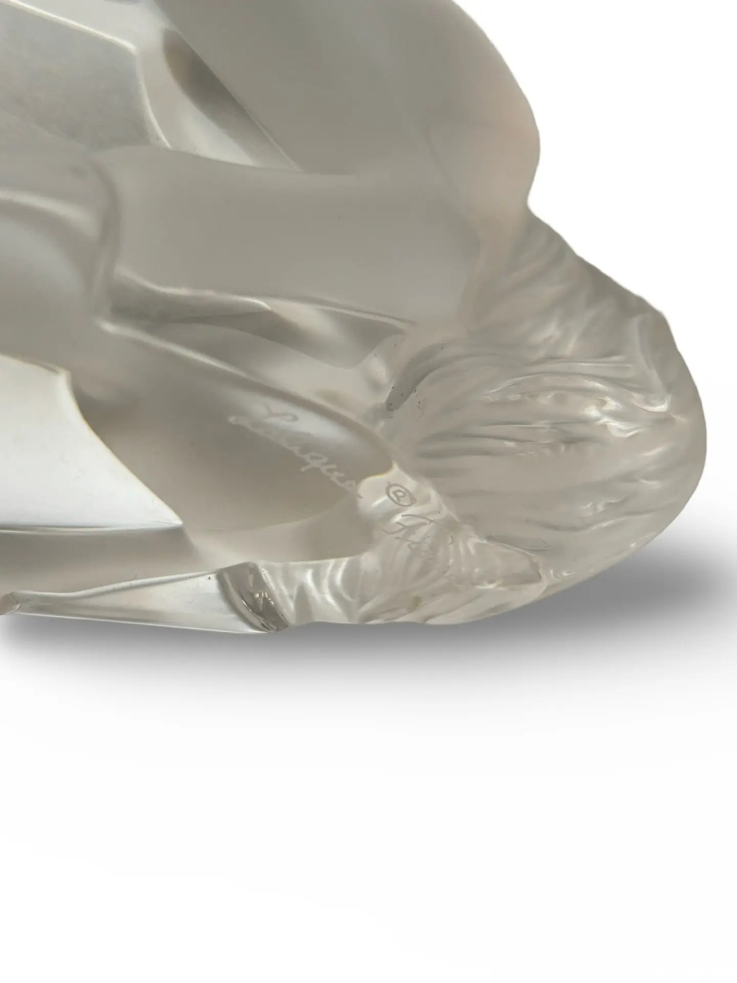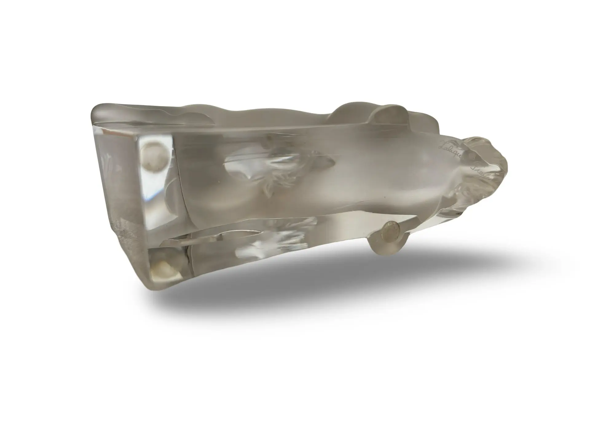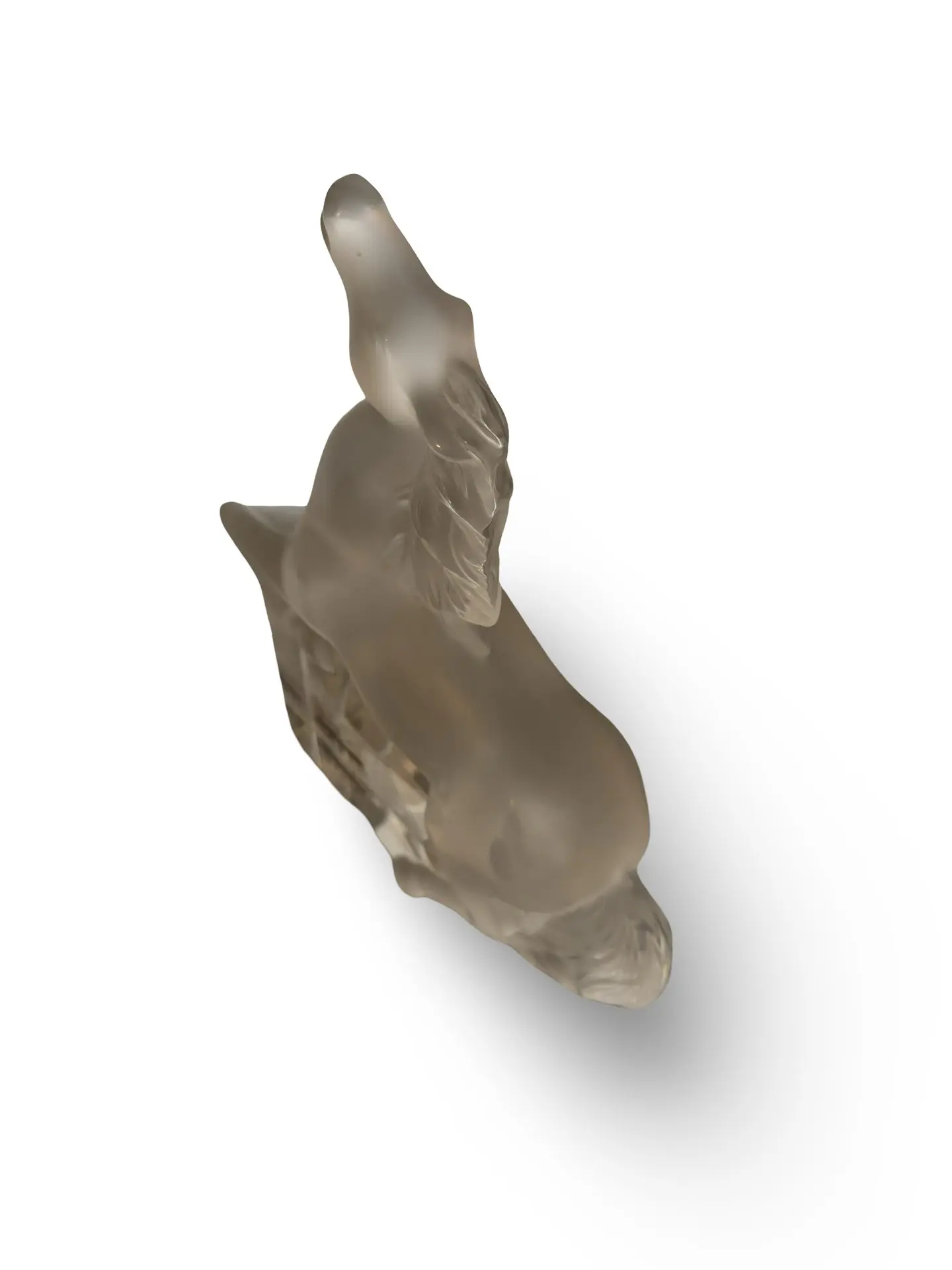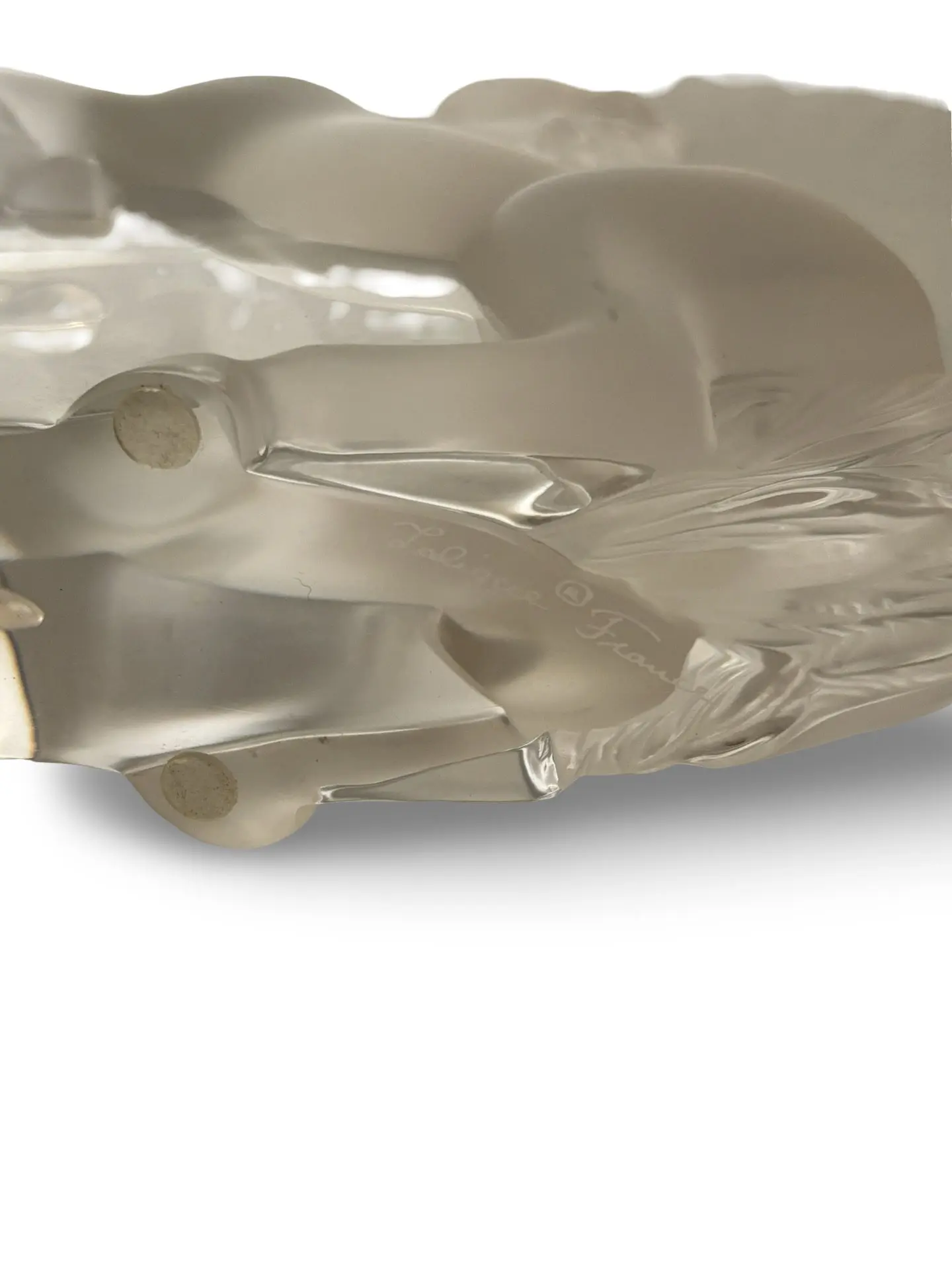 Magnifique paire de serre-livres en cristal clair et dépoli moulé pressé.
