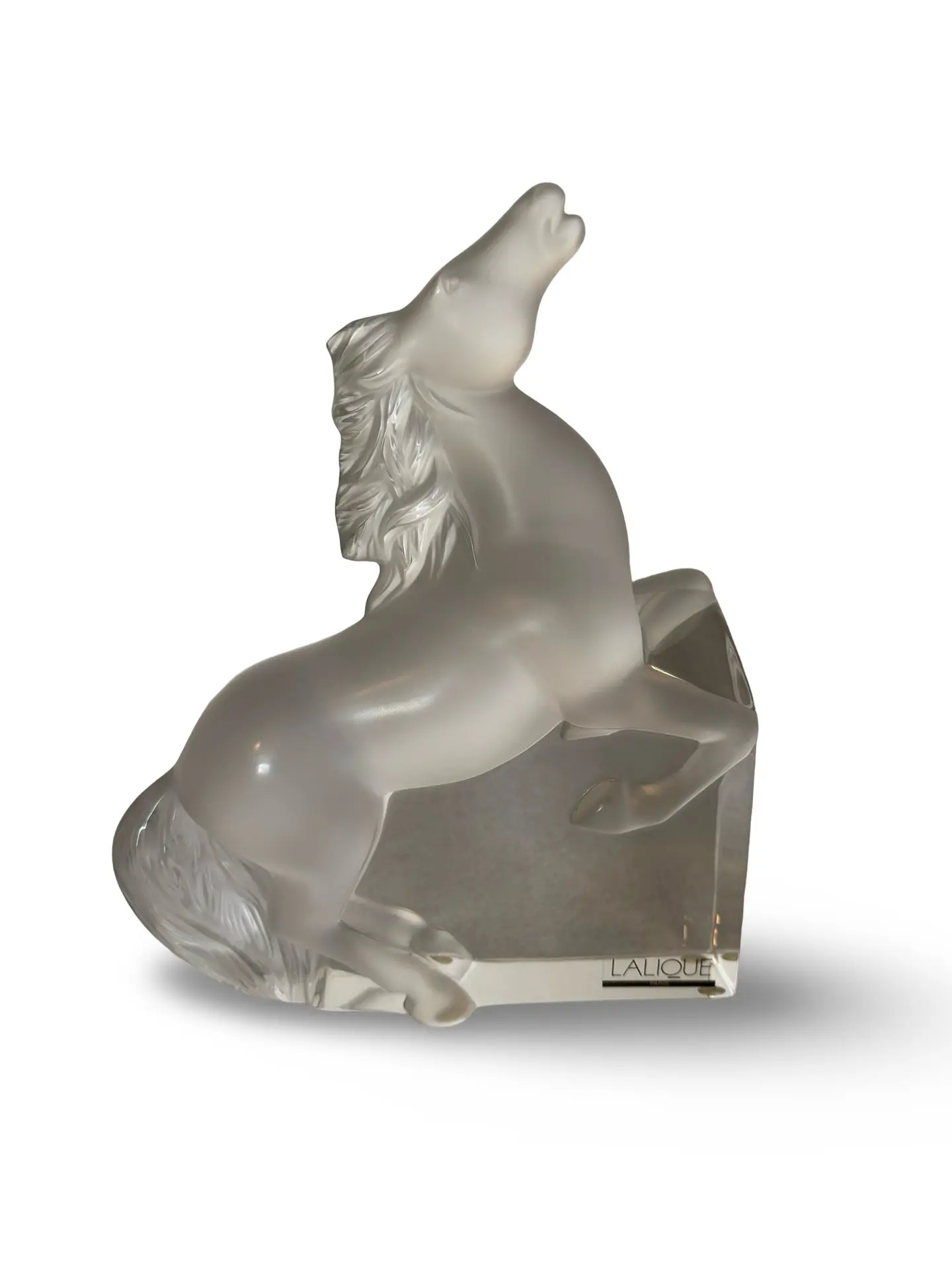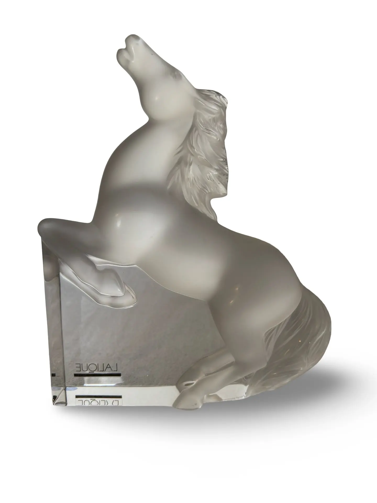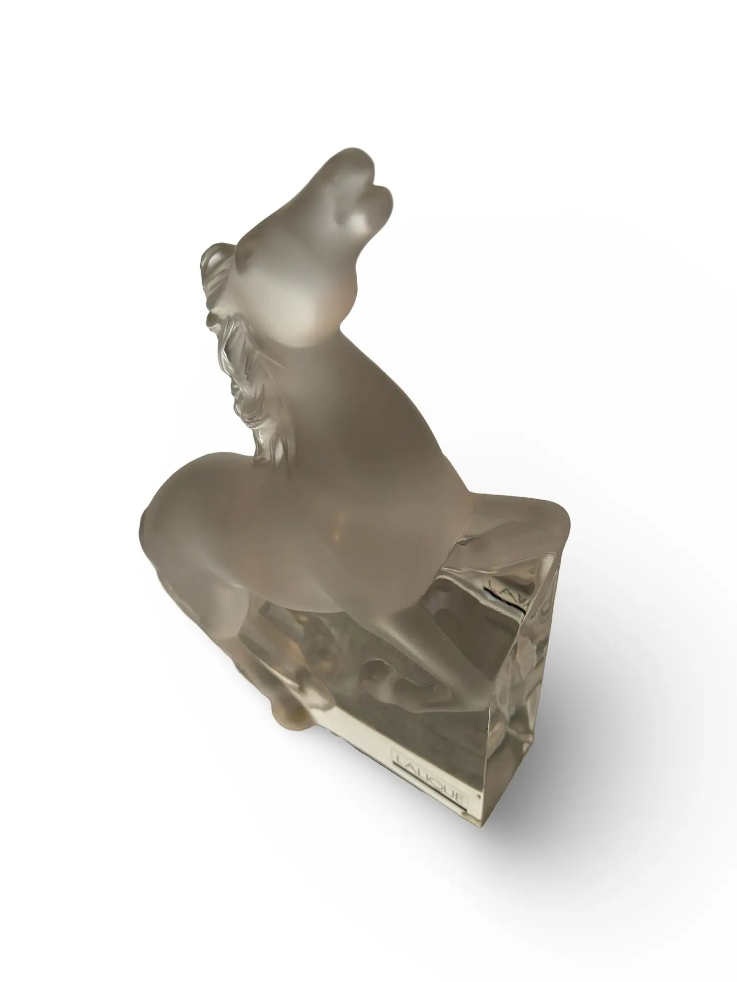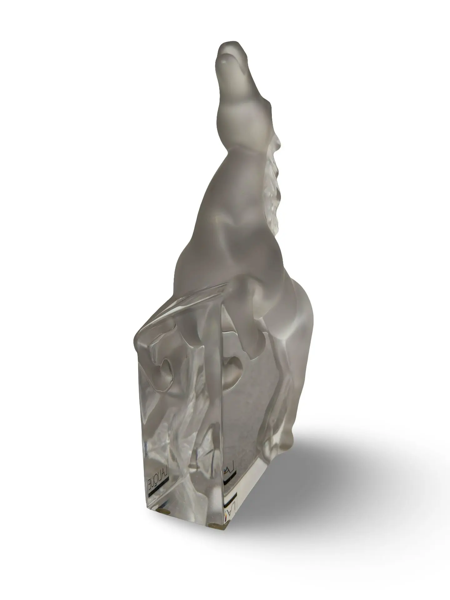 Magnifique paire de serre-livres en cristal clair et dépoli moulé pressé.