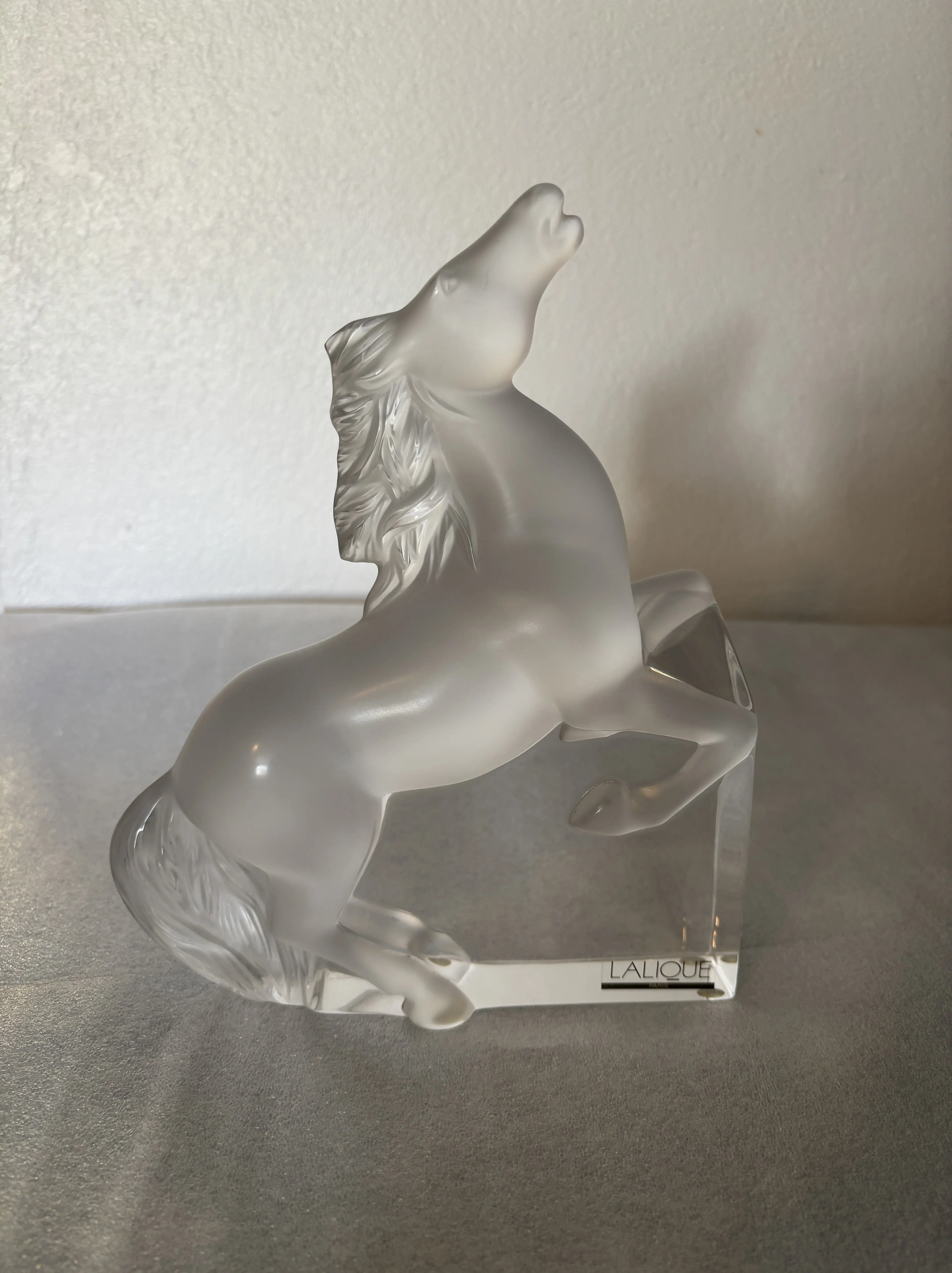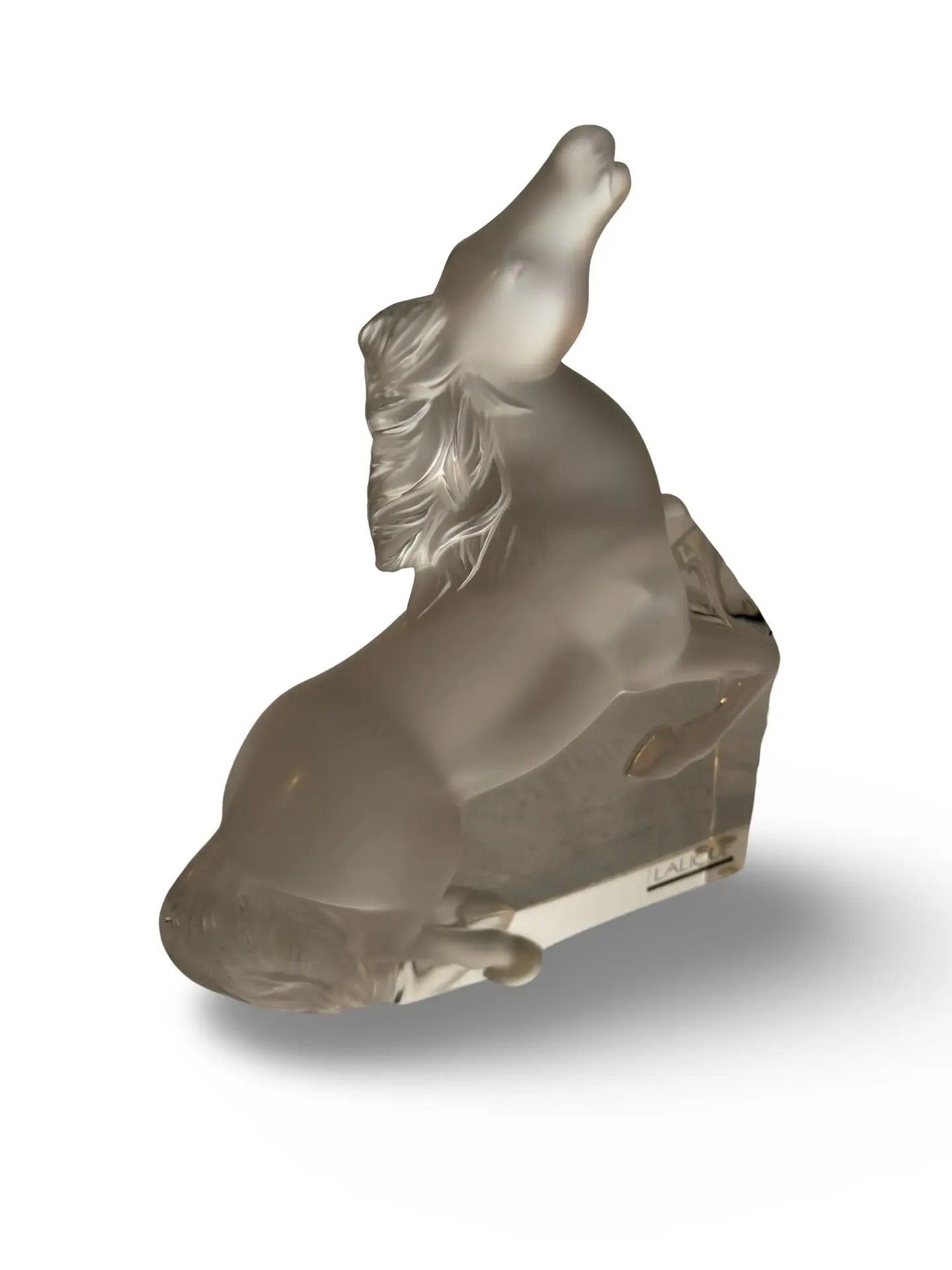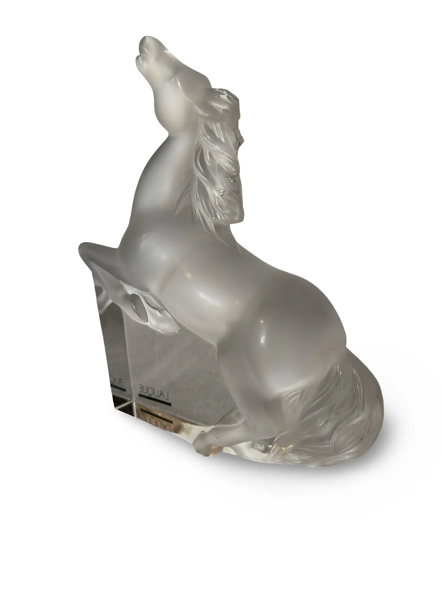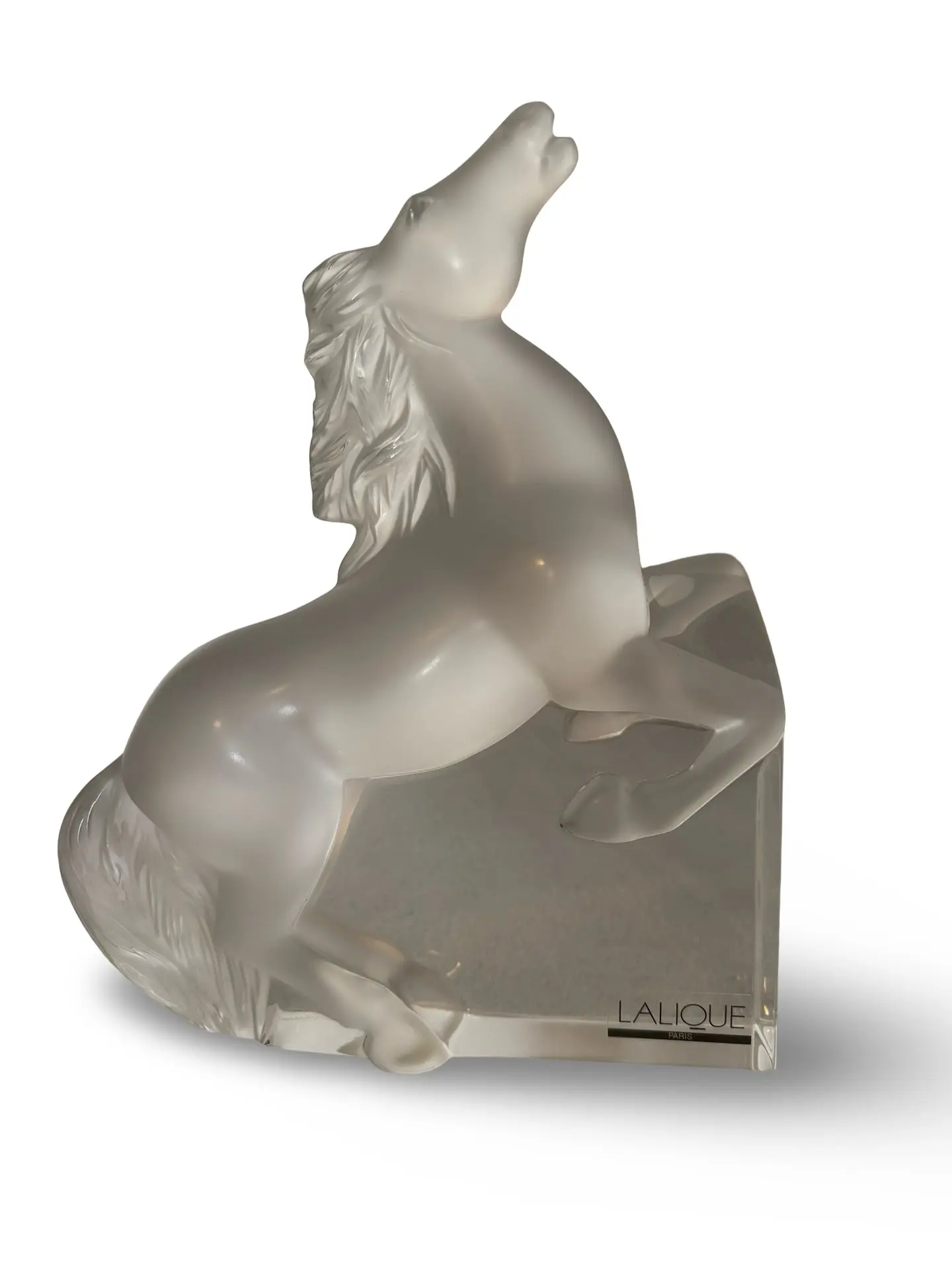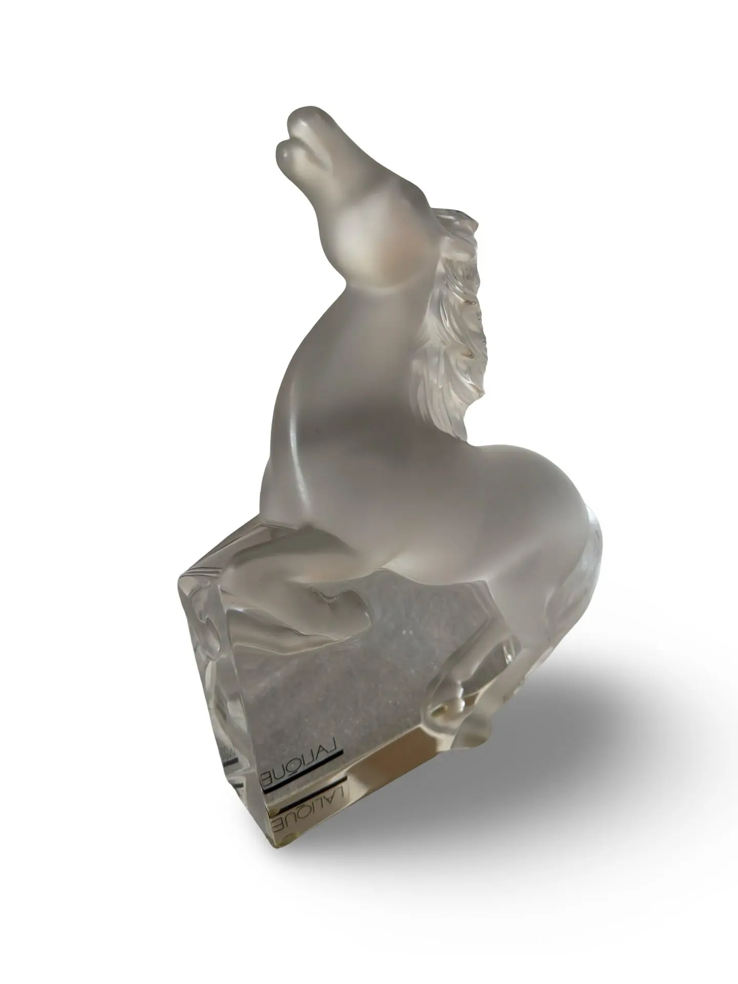 Magnifique paire de serre-livres en cristal clair et dépoli moulé pressé.